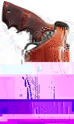 Premium saddle leather holster that fits one and three fourths inch belts. Silicone suede lined. Features stitched sight rails, reinforced thumb break with covered snap and two tension screw adjustments for custom fit.